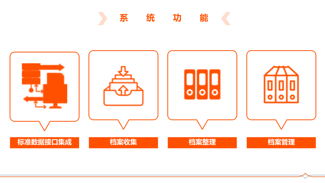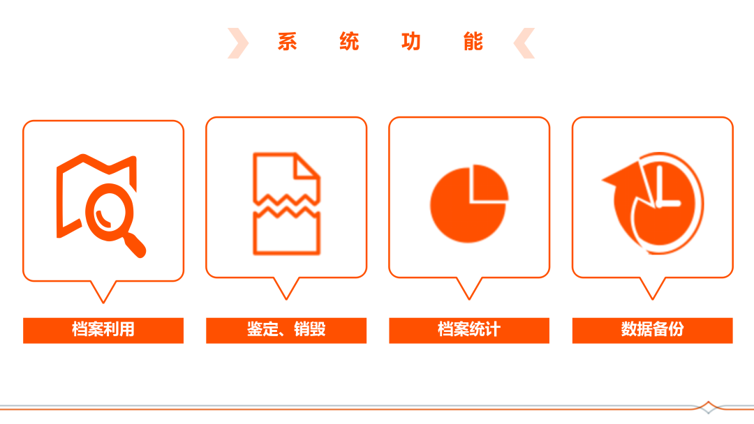 系統遵循國家檔案局《電子檔案管理系統基本功能規定》,并結合機關、企事業單位等組織的現實訴求,全方位支持標準數據集成、電子檔案收集、整理、鑒定、管理、利用、統計、備份、保護、銷毀等多功能需求,全程實現電子檔案的智能化、自動化管理。