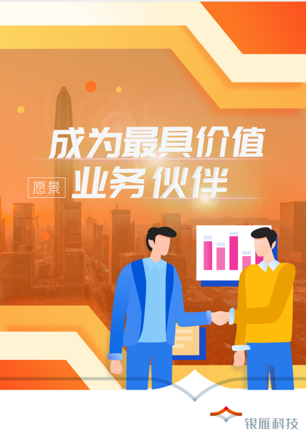 通過多年的努力和積累,在很多客戶心目中,銀雁科技已然是最好的業務伙伴,但在追求價值的道路上,我們遠未止步,我們的理想樸實又聚焦,我們希望每一位員工,都能以業務為導向,以創造價值為目標,踏實做好每一個項目,用專業贏得所有客戶的信任和認可,成為客戶心目中最具價值的業務伙伴。