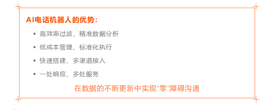 客(ke)戶(hu)服(fu)務中心是企業(ye)與客(ke)戶(hu)直接溝(gou)通的橋梁(liang)。“AI電話(hua)機器人”將“人”與“流程”“IT”相結合,替代人工客(ke)服(fu)的簡單、重(zhong)復(fu)工作,提升人工客(ke)服(fu)的服(fu)務能力,有效解(jie)決時效性(xing)和(he)信息(xi)準確性(xing)等問題。